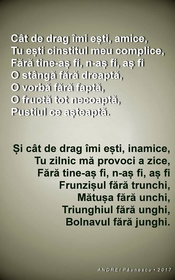 I-am considerat prieteni și le-am oferit multe șanse...Dar pentru mine au rămas "decât" niște cunoștințe false. Îi dau dreptate și tatălui...când ți-e greu, nu-i mai pasă nimănui...Prieteni care-ți spun că-ți vor fi aproape și de fapt, te înjunghie pe la spate...Prieteni care spun că te vor ajuta ...și la nevoie, nici măcar un deget nu vor ridica.